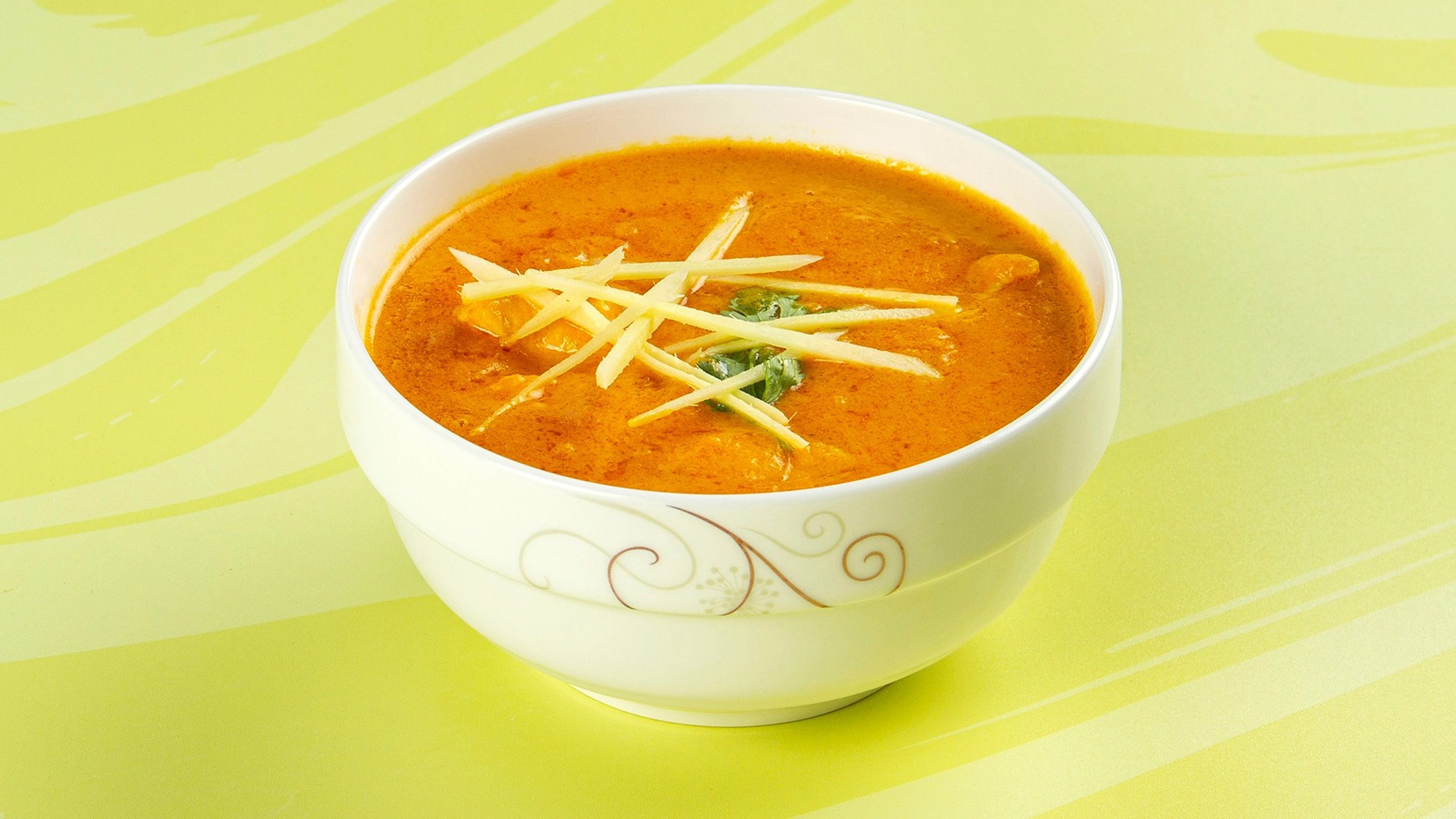 Κοτόπουλο μαγειρεμένο σε κρεμώδη σάλτσα αμυγδάλων & κάσιους. Συνοδεύεται από ρύζι basmati